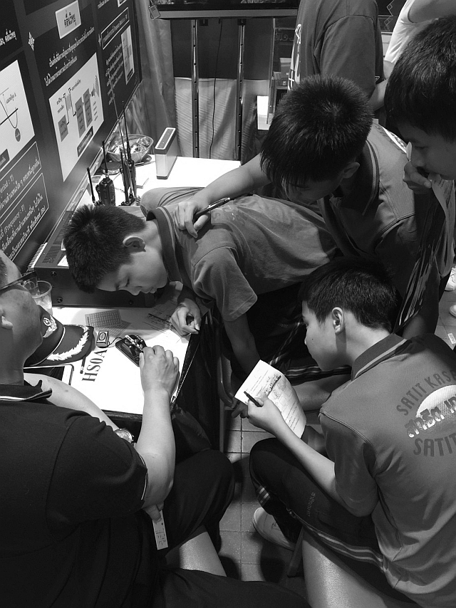 On Saturday, August 24 RAST conducted an Intermediate Class amateur radio exam at Bangkok University's Rangsit campus and thosw who pass will be able to operate on the HF bands.A total of 96 candidates sat the exam and 44 passed the CW examination at 8 WPM, with 13 of those copying the Morse code that was sent without any errors, including two boys, one 11 years old and the other 14 years old.