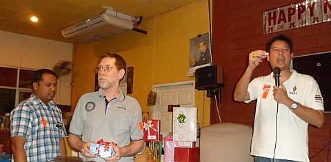 Pictured at right is RAST President Jakkree, HS1FVL making an announcement during the party.