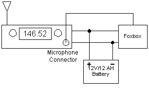 The program DIT and DAH routines will have to be edited to send your call sign. Please do not use my call sign for your fox. I mounted the Radio, 12V, 12 AH gel cell and the Fox Box in an ammo can. A chassis mount BNC connector was then added and a rubber duck antenna was added to the ammo can so it would be self contained. A locking hasp and lock was added to the box to keep the equipment from being stolen. Add a piece of chain and chain it to something. I also added a small clipboard with 3x5 cards with the numbers 1 to 5 printed on individual cards. As the hunters found the Fox, they took a number off of the clipboard to prove who was the first to the Fox. I would hide the key to the chain and lock and nearby and tell the first hunter to the Fox where it was.