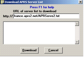 G. Under File, Choose "Download APRS Server List" and enter the server as shown below. Next, press Download.