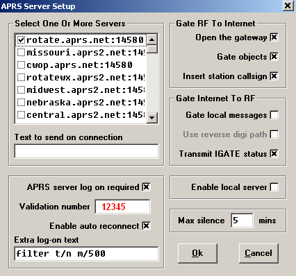 H. Under Setup->APRS Server Setup, set iGate APRS server settings. Be sure to use the validation number you received after registering your callsign. Per the instructions on UiView, you have to retrieve the registaration number from a website since it will not be emailed to you. You can set any multiple servers you like. Below is just one example.