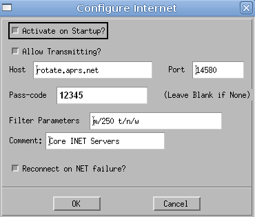 Be sure to use your own callsign, location, and passcode for the APRS server.