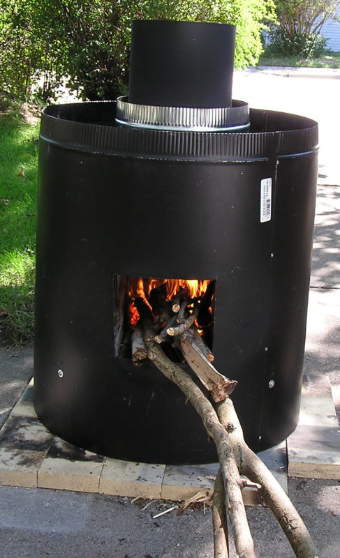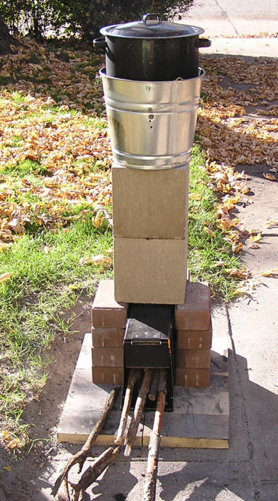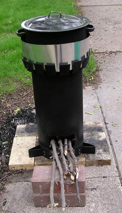 The rocket stove heating tests were conducted with sticks found in a wooded area to simulate the "real-world" conditions where wood might be found. The sticks are from various types of trees and have a higher moisture content than kiln-dried lumber. The figures for heating times should be looked at as approximate.