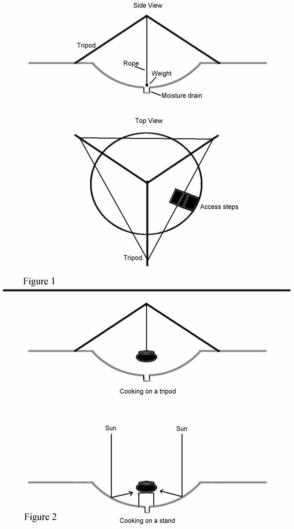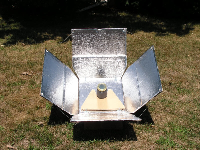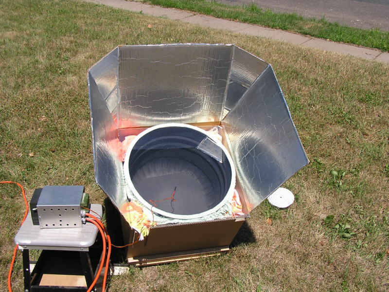 The following pages show the results of various experiments that I have conducted to learn about solar cooking and other low-cost cooking options. Wood fuel used in many parts of the world is becoming scarce and burning wood in open fires can constitute a health hazard. The idea was to make my experimental devices as simple but as effective as possible, using low-cost, widely available parts. Because the sun is not always available, I believe any cooking solution has to be looked at as a system. It also needs to include at least one reliable, always-available, non-solar cooking device. Ideally, other technologies, like a passive, insulated "hay box" design would be integrated into a complete system. Any cooking system also has to fit into the culture where it will be used or it won't be accepted. If a system takes too much time, is too complicated, or is not highly reliable, it will also be rejected.