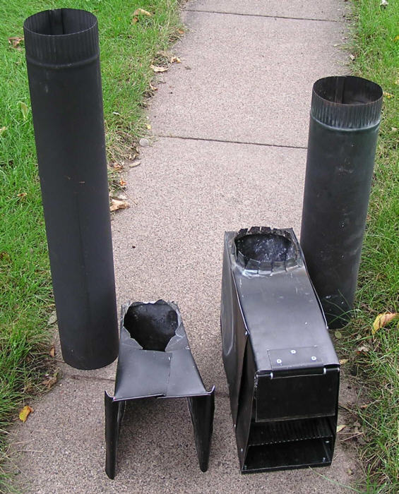 black vent pipe is used to make the chimney, a bottom for the heating chamber,