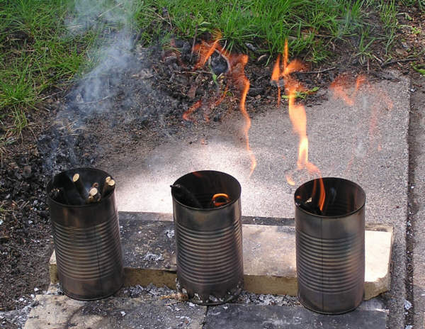 With almost no chimney to create a strong draft, the stoves with the least restricted air flow seemed to work the best. Keeping the ashes from blocking air flow is important. Unlike the aluminum cans, the steel cans showed no problems with overheating.