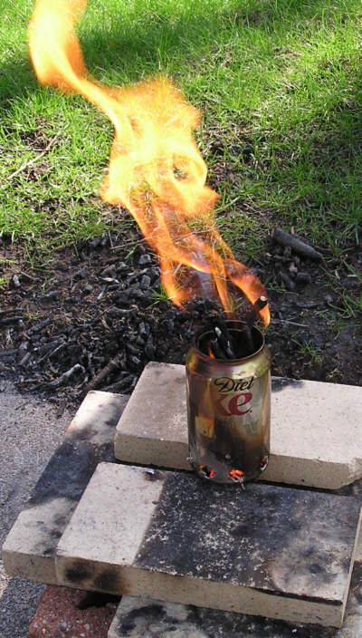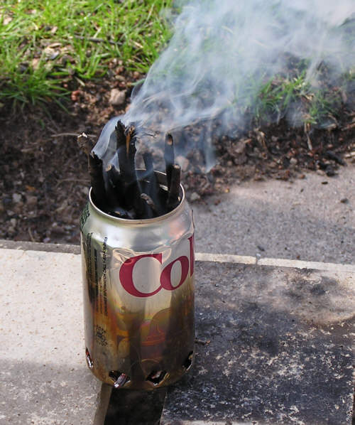 made an emergency stove out of a pop can. He cut off the top and cut some holes