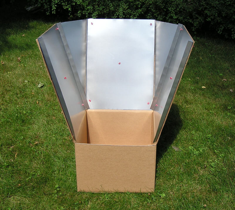 of reflectors bent at 90 deg. for rigidity. Reflector panels held onto cardboard