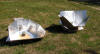 Aug 2, 2007, 11:00 am. - Put a one-third pound hamburger patty in an 8-inch diameter, painted-black covered aluminum pan. Set pan in the center of the fold-up cooker. Cooker was aimed about 10 degrees away from the sun. One-half hour later I checked it and the burger was thoroughly cooked in its own juices (Overcooked, actually). Next time I'd use a grille-type support with short legs inside the pan to keep food up out of the liquid, and also check it sooner.