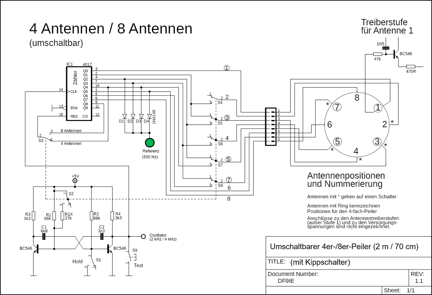 Hier meine Pläne für die Erweiterung des SSSD auf 6 bis 32 Antennen. Unten gibt es auch einen Schaltplan für einen umschaltbaren 4-fach-/8-fach-Peiler.