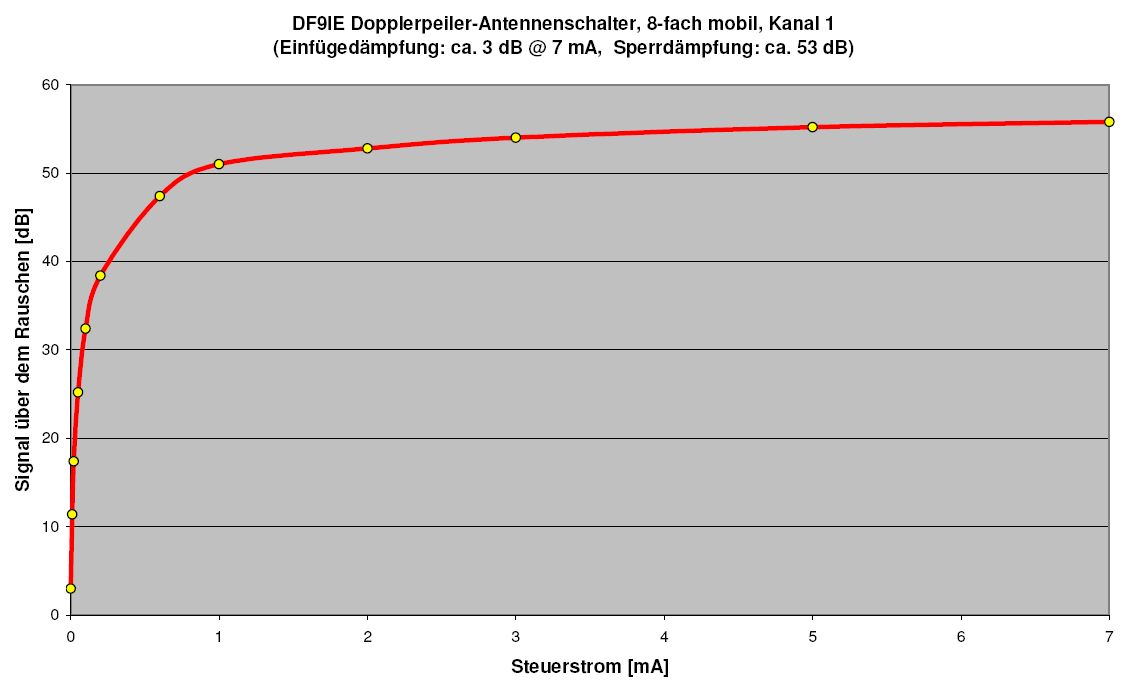 Bei meinem Antennenumschalter (mit PIN-Dioden) habe ich eine Einfügedämpfung von ca. 3 dB bzw. eine Sperrdämpfung von ca. 53 dB (@ 0 V) gemessen.