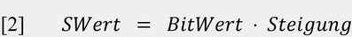 Zum Bestimmen des Faktors kann man die Gleichung [11] umstellen. Setzt man BitWert = 0, dann kann man den Faktor für die maximale Entfernung (bei S = 0) berechnen: