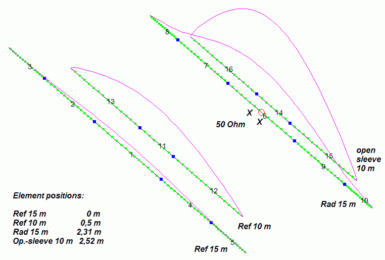 The beam has only one feedpoint with 50 Ohm and has an open-sleeve element for 10 m