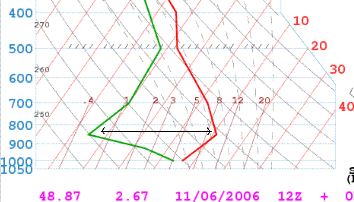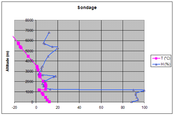 Application Prenons l'exemple de l'ouverture tropo du 6 Novembre 2006. Le sondage de Trappes donnait les résultats suivants:
