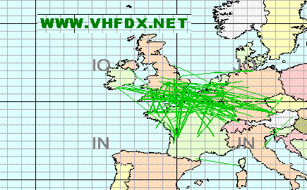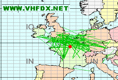 Observations Afin d'illustrer l'ouverture tropo du 6 Novembre 2006, les cartes suivantes illustrent les QSO réalisés. Ils montrent assez nettement les dx réalisés et les directions de la propagation, encore plus visibles sur les bandes 1,2GHz et 10 GHz.