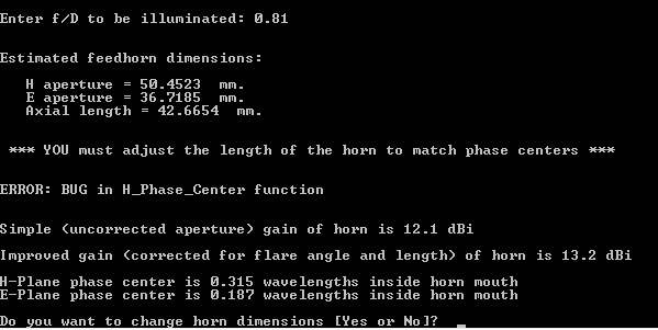 Conception de la source cornet rectangulaireParmi les nombreux types de sources, le cornet rectangulaire offre de nombreux avantages: - il est très facile à réaliser et à adapter à un guide rectangulaire - il présente de très bonnes performances en rendement, largement suffisantes pour du trafic terrestre Bien entendu il est toujours possible de fabriquer ou d'acheter des sources plus performantes offrant un meilleur rendement mais le gain obtenu vis à vis du QSJ ou de l'effort de réalisation ne se justifie pas pour du trafic terrestre. Par contre il se justifie pleinement pour du trafic spatial, en particulier EME, car dans ce cas de figure l'apport de bruit par spillover est bien plus prépondérant puisque la température d'antenne est plus faible (elle vise le ciel à 6K contre 300K pour du terrestre) et une augmentation faible du gain est toujours appréciable pour copier les signaux (très) faibles. Pour approfondir plus cette discussion se reporter à mon analyse sur le besoin comparé de performances entre une station dédiée au trafic terrestre et une station dédiée au trafic spatial. Ma réalisation concerne aussi la partie transition SMA/guide qui est solidaire du cornet. Caractérisation de la parabole offset et des caractéristiques nécessaires pour la sourceMenu : "Offset dish calculation" Le F/D correspondant à mon réflecteur est donc de 0.81 La source doit présenter une ouverture à 3dB de 40°. Comme le montrent les courbes suivantes, l’ouverture à 70° doit être de : (-10dB) + (perte espace libre parabole = 0.8dB) = -9.2 dB (de DK2RV, DUBUS 1/1986)