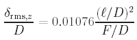 La formule suivante donne l'erreur rms pour un maillage composé de triangles équilatéraux plats de cotés l et pour un réflecteur de focale F et de diamètre D:
