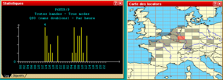 | Contest de printemps 2006. F6KUP/P144MHz : 4 * 4 el et 17 el Tonna + 1kW 432 MHz : 2 * 21 el Tonna + 100W 1296 MHz : parabole 1m80 + 130W Report sur 1296 MHzGraphiques