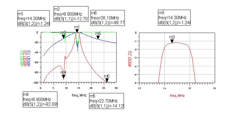 Voici le résultat de simulation pour le filtre 14MHz.