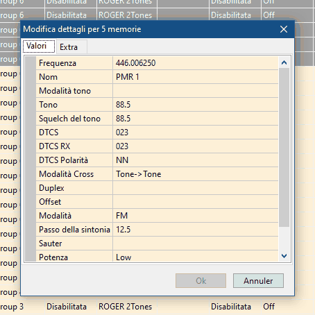 OFF, D023N, D025N, 26โฆโฆ.754 | Sets a DCS code in transmission, only for FM (208 codes). |