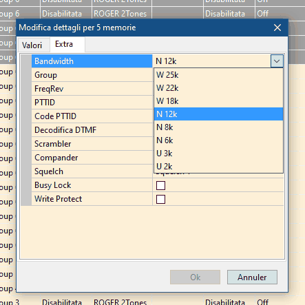 0, 1 e 2 | X version only. Allows you to select one of the 3 memory banks to be used. Also select them for use with CHIRP. |