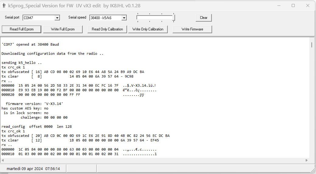 IJV MOD V-x.x, Batt Volt. N= Normale, X= 3000 canali. |
