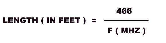 example - 466 / 14.025 MHz = 33.226 feet - so a 14 MHz ham radio band dipole has a total length of 33 feet - each leg is 33/2 = 16.6 feet