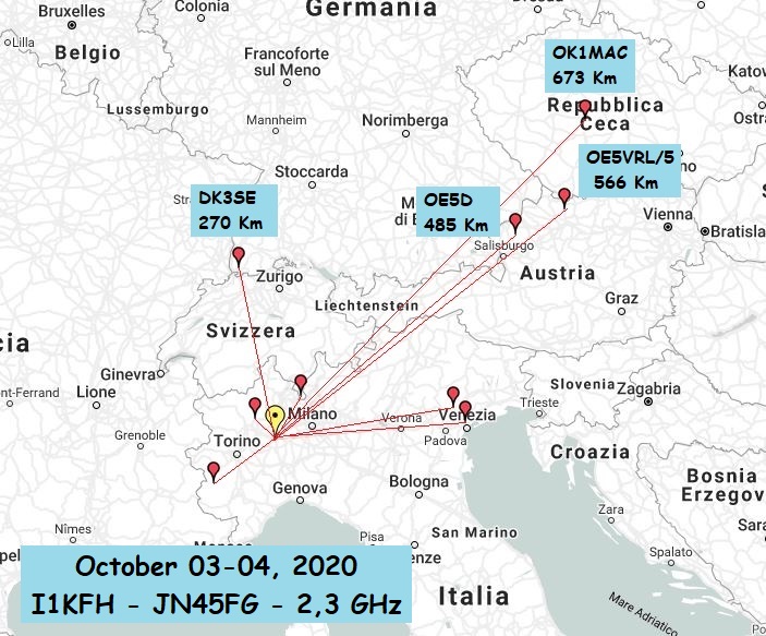 FLEX 1500 + transverter 144 MHz hm / transverter 57G2 DB6NT hm + PA 10 W / ant. Dish 1 mt offset | |