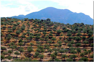 barriera montuosa comincia la lenta discesa a mare: terrazze di ulivi cominciano