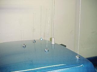 The antennas were easy, I just decided on a triangular pattern for the 6 antenna mounts that utilized the two existing holes that were there. If there's one thing I learned working for Moto, it was how to drill a 3/4" hole. Heaven knows I've drilled hundreds. The coax was a little harder. I couldn't fit all the coax cables down one pillar, so I split them and ran them down both sides. In addition to 6 coax cables, there's 12V power for the dome light, a bed light, and a multi-conductor cable for the overhead speaker (select audio).