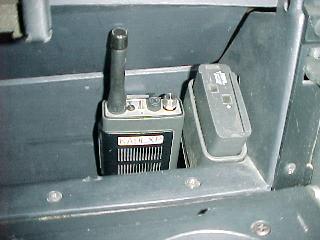 Radio fitting and cable routing. HT90 on the right is the UHF Link radio. Hands free PTT/cruise control mounted on stick shift. |