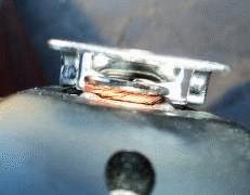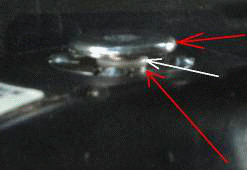 The white arrow points to a plastic circle that insulates the two conductive surfaces. If the 2 conductive surfaces are NOT connected, such as when you are holding the mic, the unit will NOT scan. |