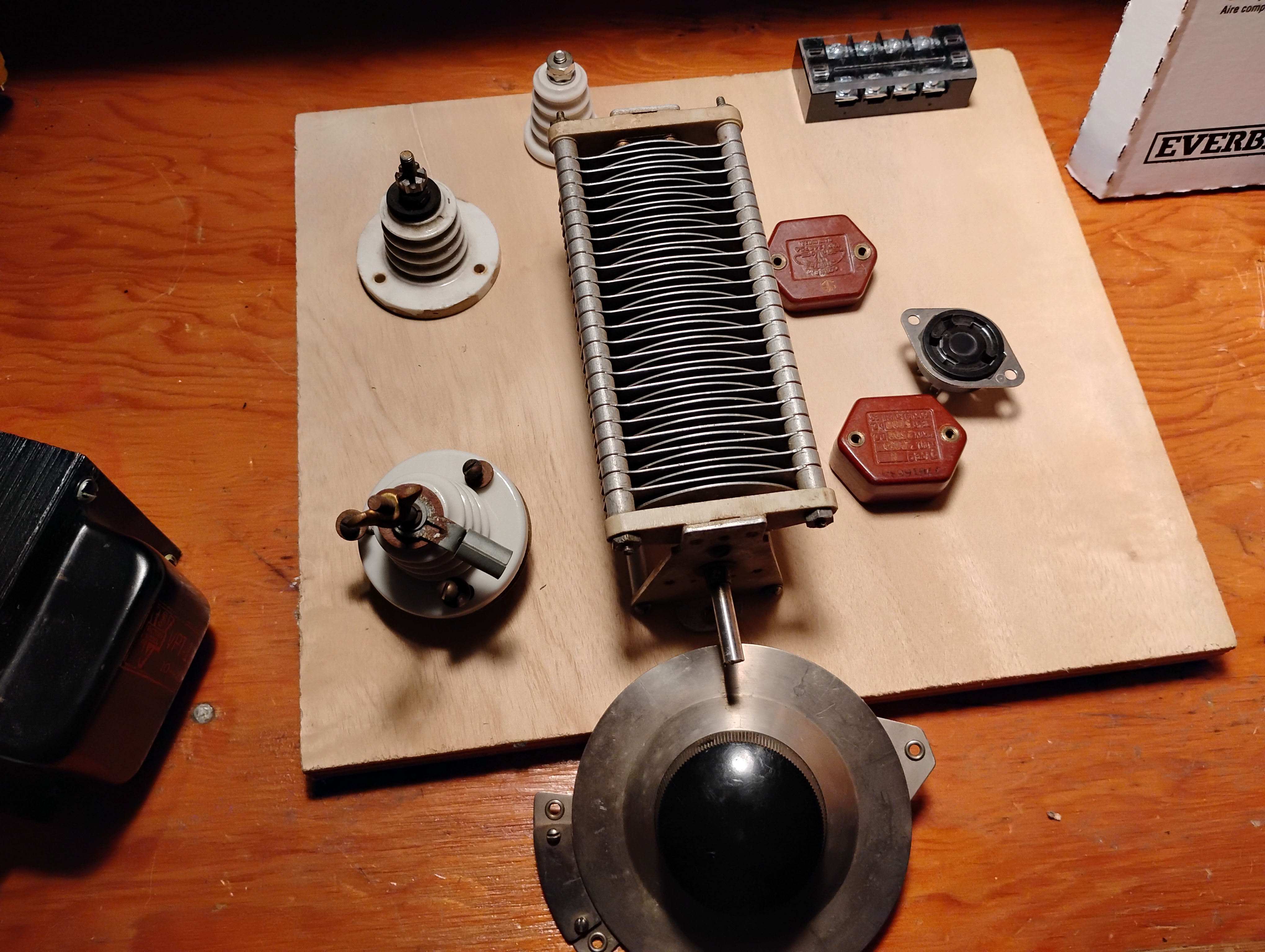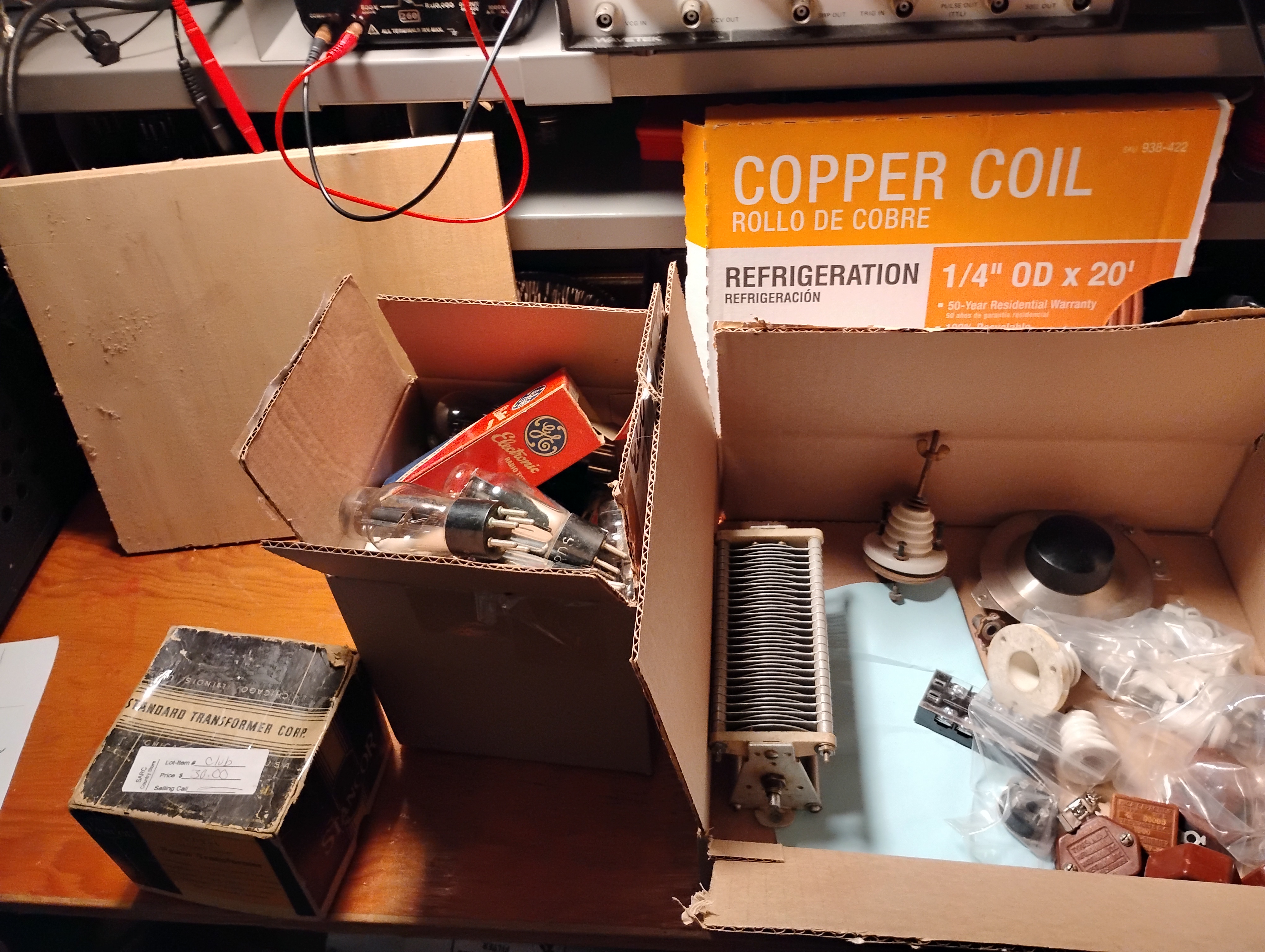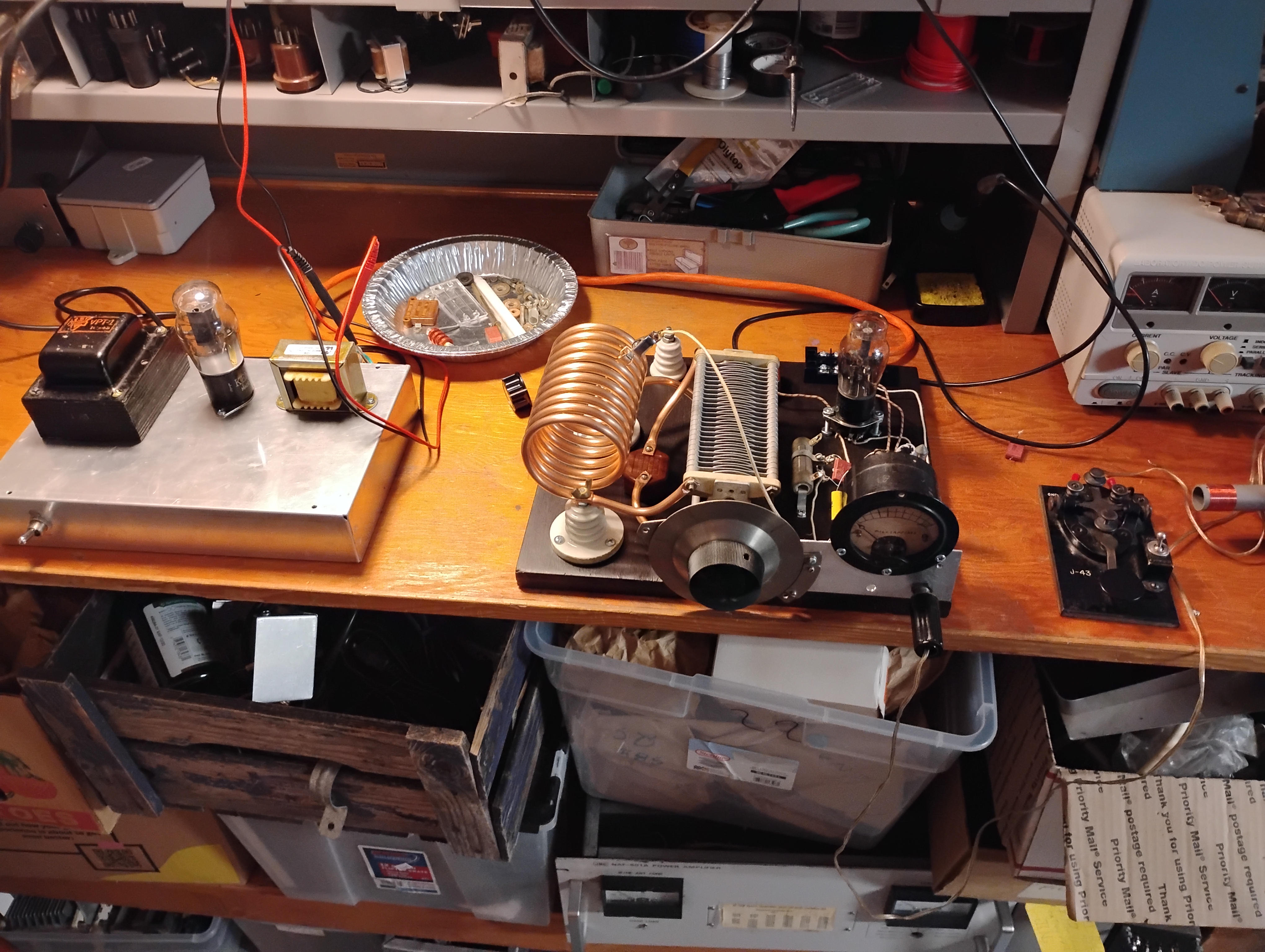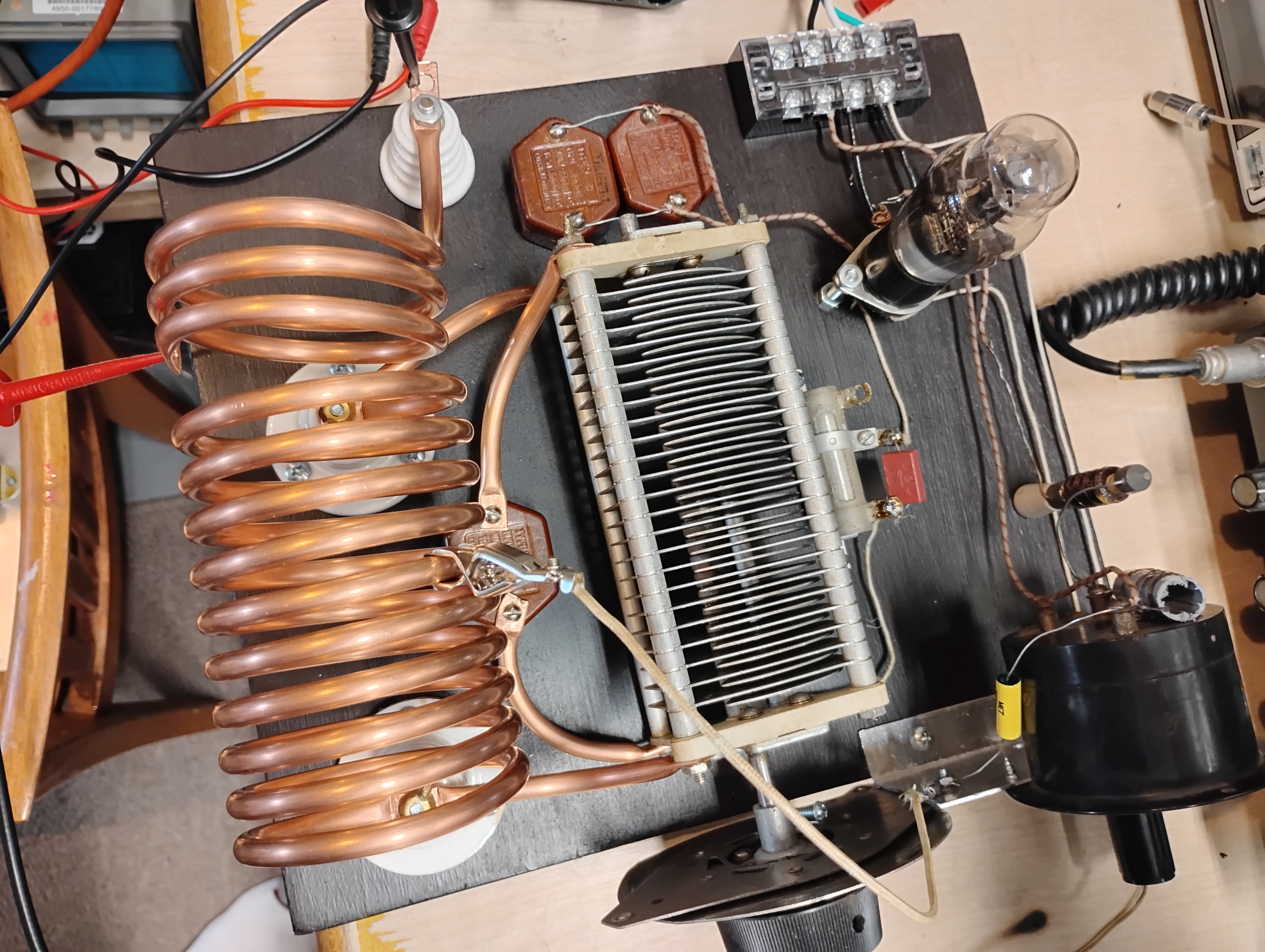 I have planned to build and get a 1929 transmitter on the air for the better part of a decade, culminating in 2025 Bruce Kelley QSO party. Parts were scrounged and saved from various swap meets in the PNW, "junk donations", and the local electronics resale store, Surplus Gizmos. Earlier this year when I encountered a few beehive standoff insulators I knew would be able to finish soon. I got a great deal on several type 27 tubes at SEA PAC ($2/ea!) and was off to the races. The only part I had to order specifically for this project was the power supply input choke to go with the Type 80 rectifier, because I didn't want to wait another year! The Stancor "Victory" power transformer was a nice touch.