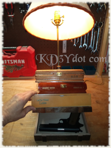 ![]() ![]() The local cigar shop gives away the empty cigar boxes for free. The desk lamp I created from stacked cigar boxes looks pretty neat, but the idea was a "secret compartment" in the bottom. Only the bottom box opens. The top two are glued closed. It goes nicely in my man cave. ![]() ![]() ![]() |