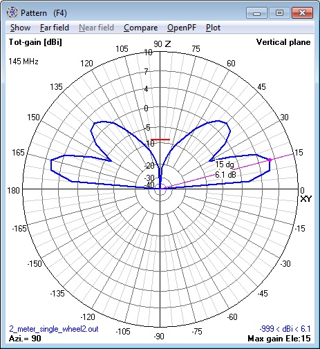 15. 144 MHz single Cebik Wheel Antenna at 1.0λ 4nec2