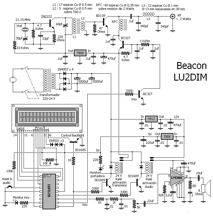 mientras que el oscilador se alimenta atraves de un regulador de 12