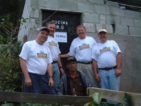 The TG0AA team after the CQWW CW 2003 contest. From left to right N0STL - Vlad, N0AT - Ron, Don Francisco Carrera, W0OR - Bill, W0FLS - Dave.