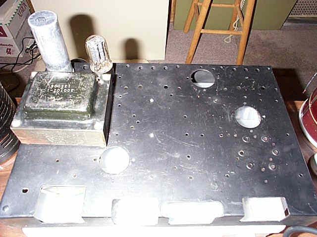 This homebrew xmtr uses a 5763 tube driving a 6146B final. The rig puts out about 45 watts a peak load. The rig is usable on the 40 and 80 meter ham bands using plug in coils. I will get a few more pictures of the rig posted soon, along with a copy of the schematic. This was a fun project and still has further additions and improvements. Next build step; build an internal VFO, paint and label the cabinet. By the way, I bought a supply of war surplus FT243 Xtals and hand ground them to make them usable on the ham bands. Look for an update on xtal grinding in a future web page.