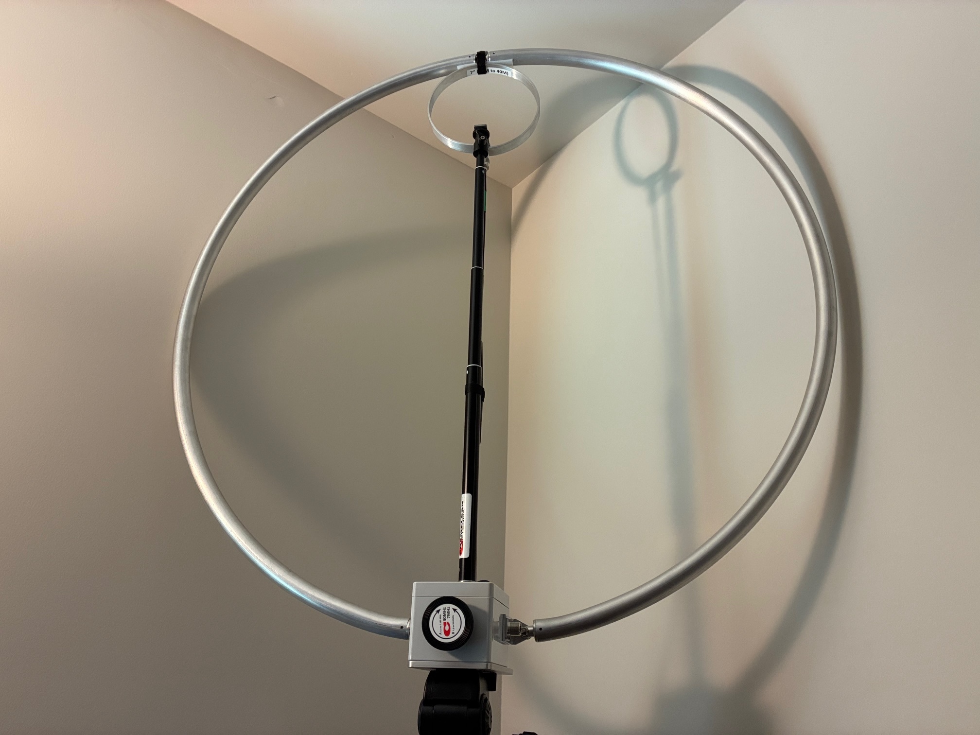 Let's take the tuning unit apart and see what's happening inside. As a refresher, here is a photo of the loop on its tripod at the edge of the side table.