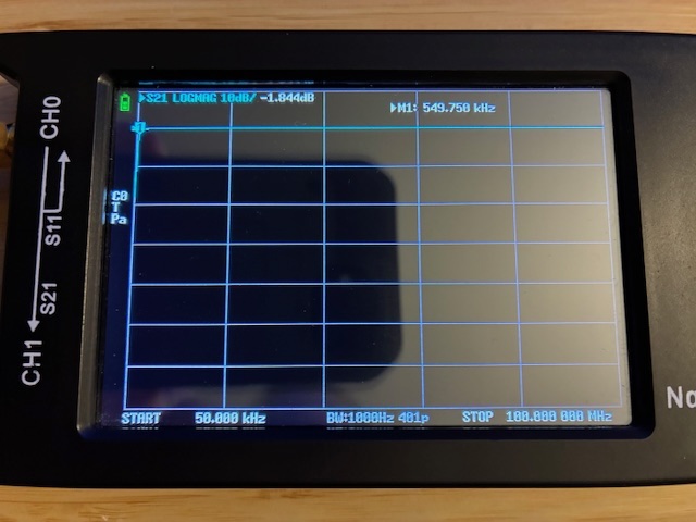 Testing with the NanoVNA-H4 to determine the low frequency response (down to 50 KHz).