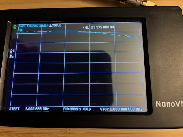 The low frequency roll off was not present in this approach. Here is a close up of the S21 plot. Looks pretty good!