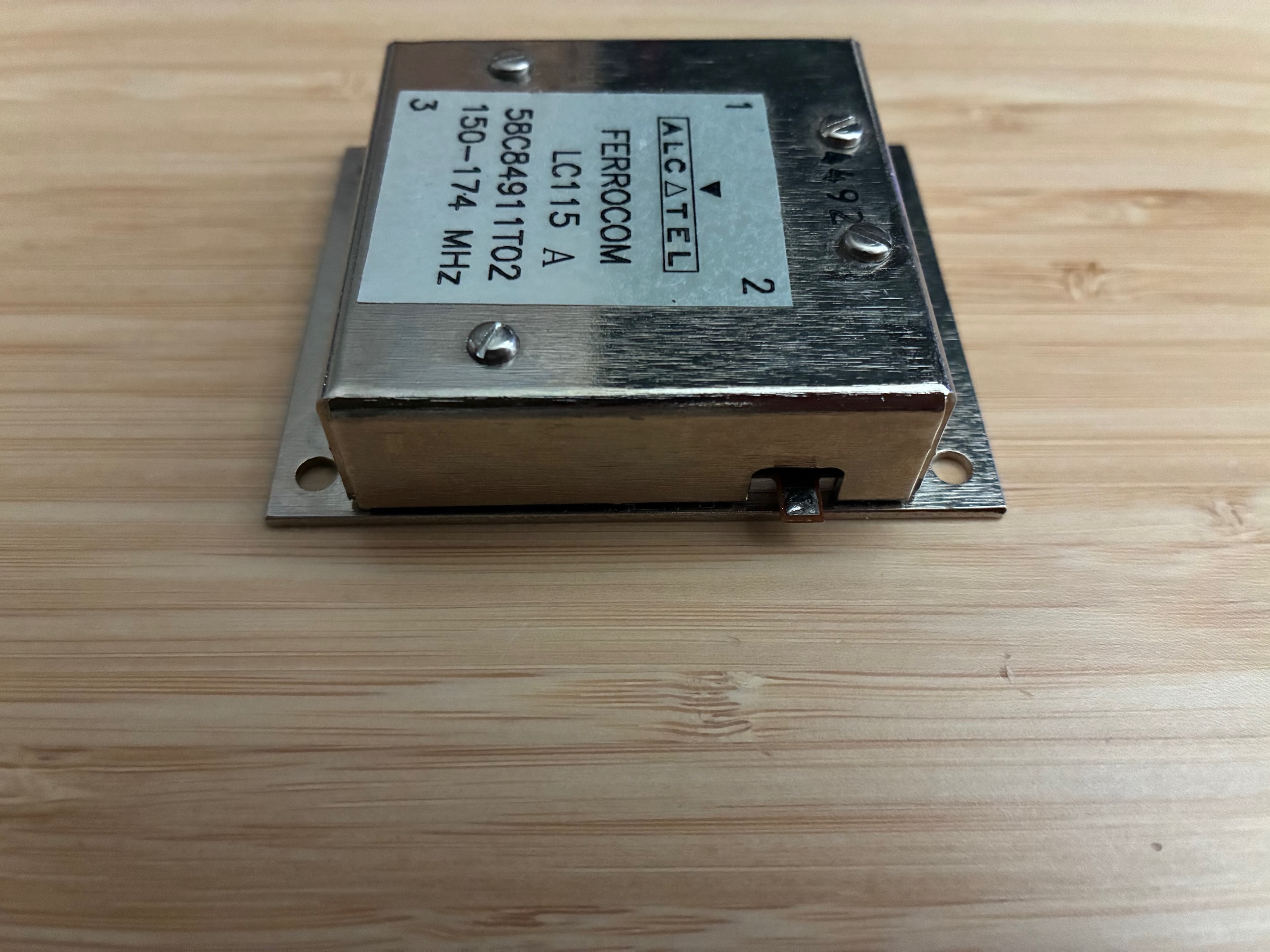 This Ferrocom LC115A device is approximately 2 x 2 x 0.5 inches and has three solder tab connections. Ports 1 and 3 are on the left side of the case.