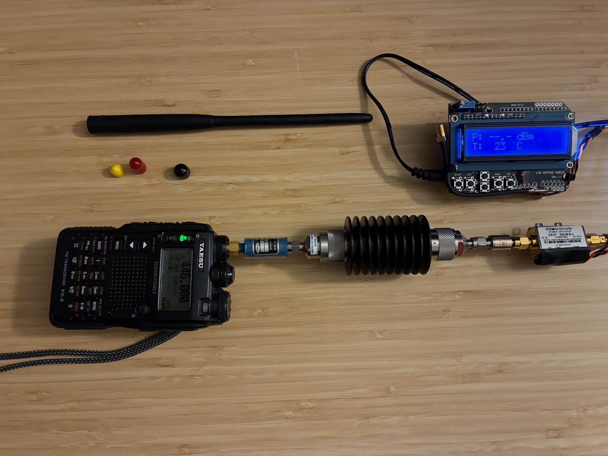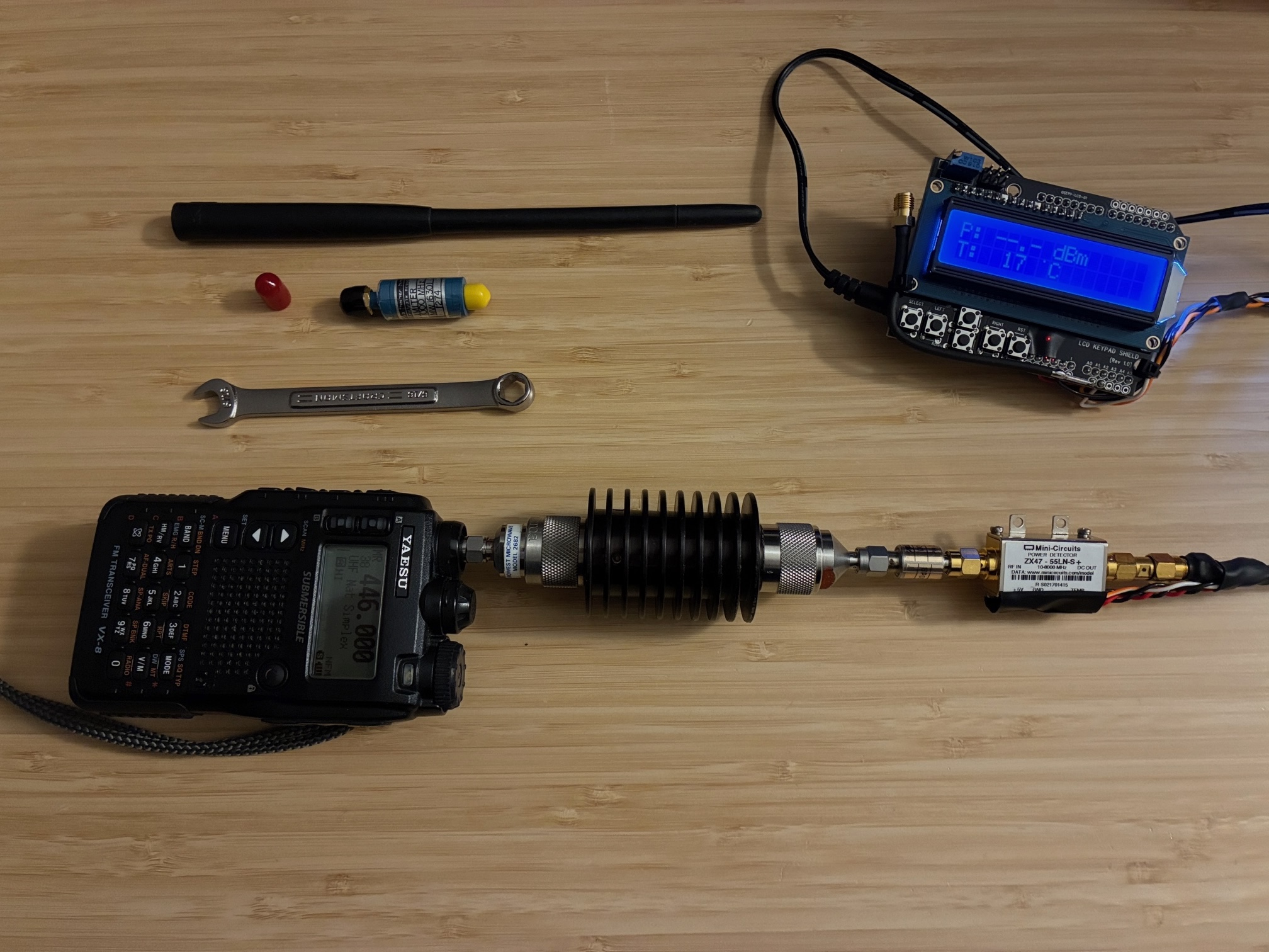 Continuing on from RF Limiters Part 1, was not able to sort through the higher-power modular RF amplifiers box, but was able to run a quick test with a Yaesu VX-8DR walkie-talkie transmitter as a signal source at 446.000 MHz. Equipment used for this test was:
