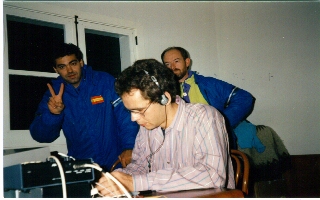 Pasi OH1MM (ex-OH1NSJ) and Butternut HF6. These are takes from OI1MDR/p (IOTA Contest 1996). This is all what it needs to work 2700 qsos in 24 hours (we [OH1NOA,OH1NSJ,OH1MDR] won!).
