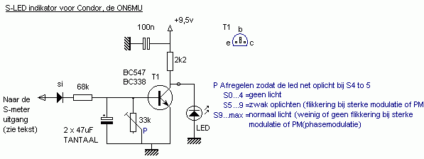 De S-meter spanning, waar je de onderstaande schakeling
