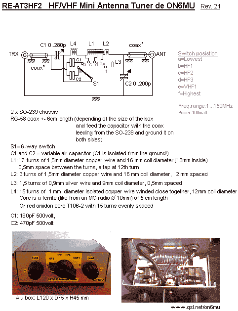 C1 = variable capacitor of +/- 500 pF (air spaced)(1kv). C1 needs to be isolated from the ground!