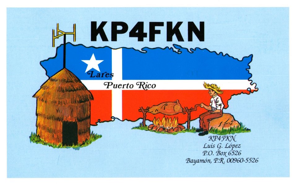 6 WP4U - SSB Year: 2004 Band: 12, 15, 17m Specifics: IOTA NA-099 mainland Puerto Rico |