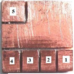 Placa normal com 15 x 15 mm ilhas 1, 2, 3 e 4 com 4 x 4 mm e Ilha 5 com 5 x 5 mm