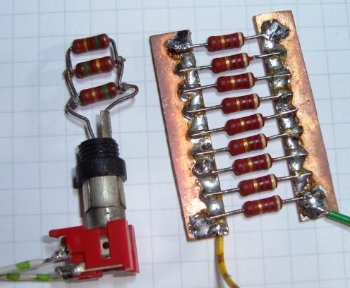 Construimos duas, uma (de 6W) com 3 resistores, de metal filme, de 2W de 150 Ohms em paralelo TX. A outra (de 18W) foi com 9 resistores de 470 Ohms 2W.