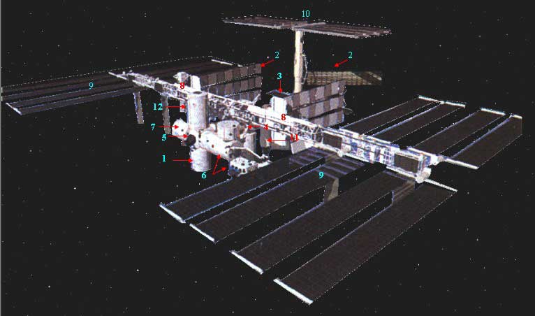 | 13 | Zarya | 20/11/1998 | Russie | Ce module de contrôle de 4 m de large et 13 m de large puis de 20 tonnes arrimé au module de service reçoit aussi un élément d'amarrage pour les vaisseaux Soyouz. |